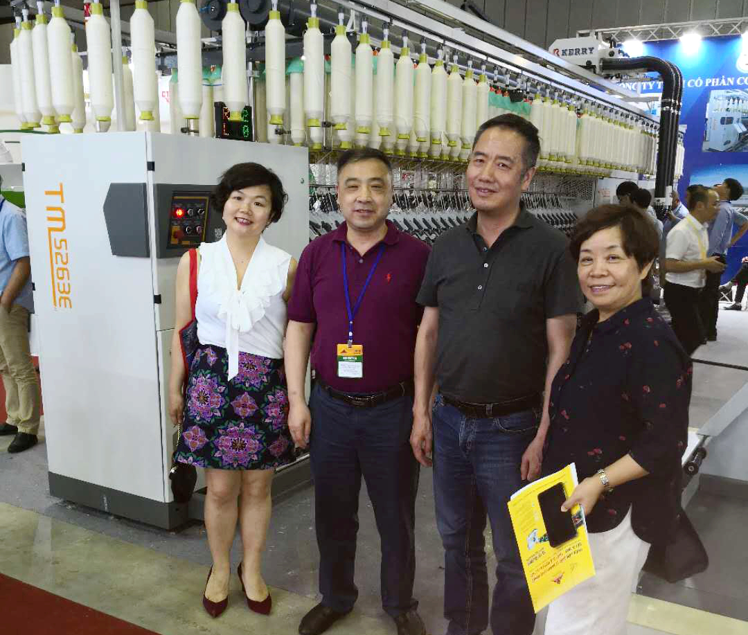 在展會上,位于A2-2D-1湖北天門紡織機械股份有限公司展位人頭攢動、客戶云集,成為整個展會的一大亮點,VINATEX NAM DINH、VICOTEX、 成功紡織、臺灣興業、臺南紡織、東光公司等當地企業負責人親赴現場參觀,華孚時尚董事長孫偉挺等嘉賓在天門紡機展位認真觀看設備演示,詳細了解了產品的新性能和新工藝,對天門紡機并條機與細紗機兩款展機給與高度評價。