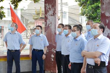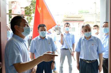 石家河鎮(zhèn)委副書記、鎮(zhèn)長(zhǎng)謝紅宜(左1)講述革命歷史