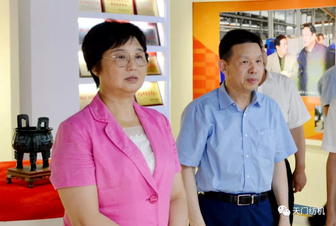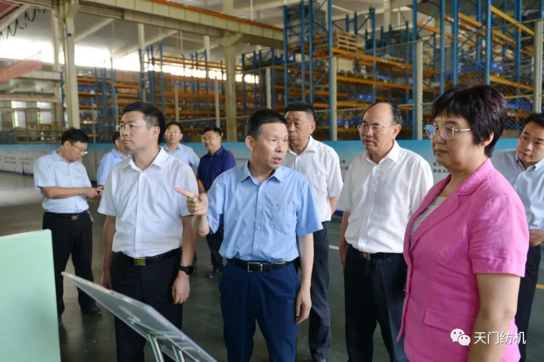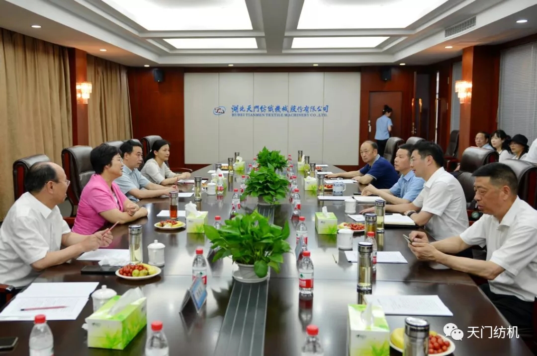 王主任一行參觀了天門紡機生產車間,詳細了解了紡織行業發展和公司主導產品研發、生產情況,并在公司召開了座談會。