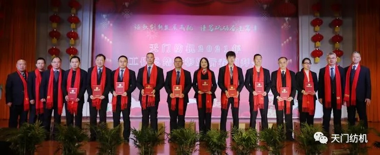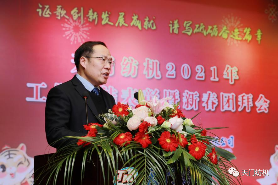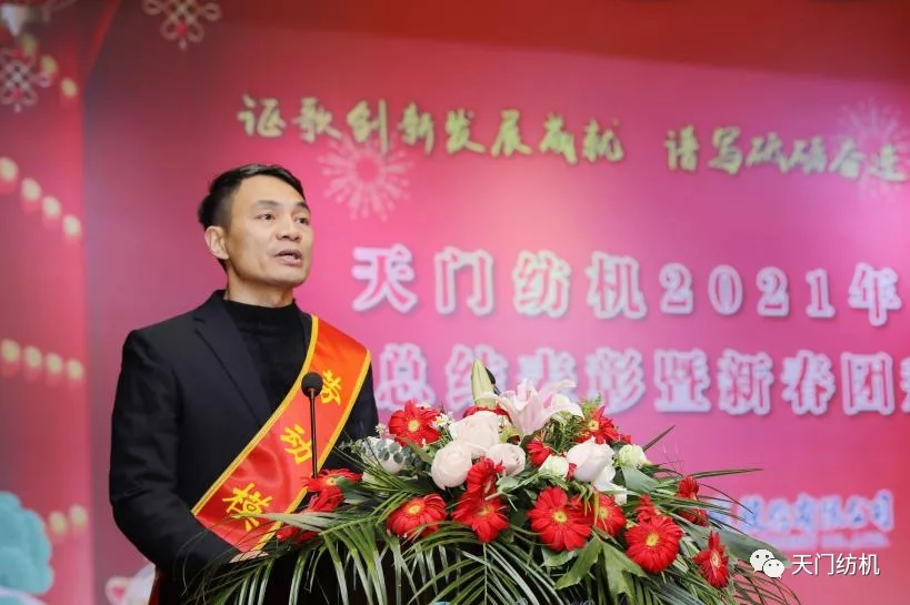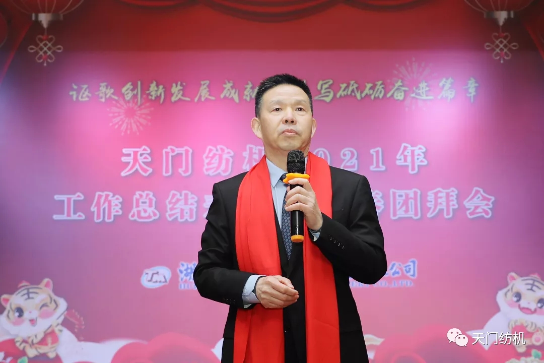 董事長沈方勇致熱情洋溢的新春賀詞,他表示,天門紡機走過了激情奮斗、碩果累累、超越自我的2021年,回首“退城進園”、轉型陣痛、市場洗禮、疫后重生的十年,公司“專精特新”的發展之路不曾改變,研、產、供、銷的“六高”閉環不曾動搖,“單項冠軍產品”的頭銜始終沒有丟失,技術創新度、品牌知名度、市場占有率、產品附加值同步提升、屢攀新高。感恩偉大祖國,感激業界同仁的支持信賴,感謝全體員工的團結拼搏、風雨同舟、辛勤付出!