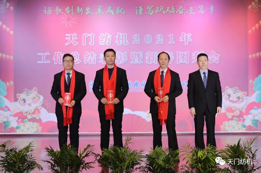 金牛奮蹄去,瑞虎踏雪來。1月29日,天門紡機的大禮堂燈光璀璨、歡聲笑語,2021年工作總結表彰暨新春團拜會隆重舉行,全司員工歡聚一堂,共賀虎年新春。