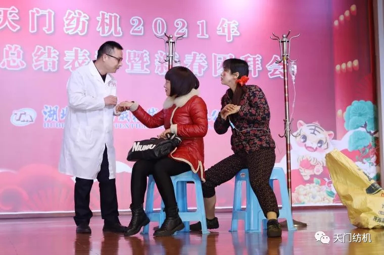 打起三棒鼓,敢為天下先。加工車間表演的三句半——《天門紡機攢》,詼諧幽默,充滿了濃郁的鄉土氛圍,年味十足,喜慶熱鬧。