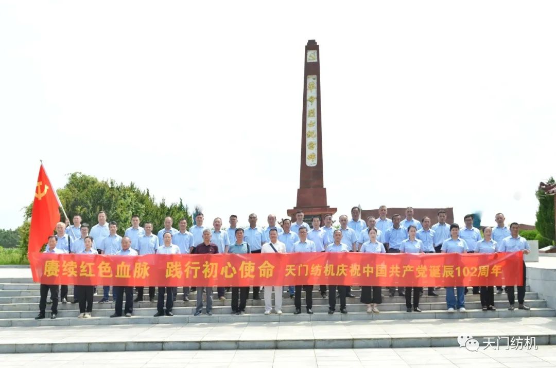 2023年7月1日上午,天門紡機近50名黨員懷著崇高的敬意,來到鐘祥長灘烈士陵園,舉行“慶祝中國共產(chǎn)黨誕辰102周年”主題黨日活動,追憶光輝歲月,緬懷革命先烈,接受精神洗禮。