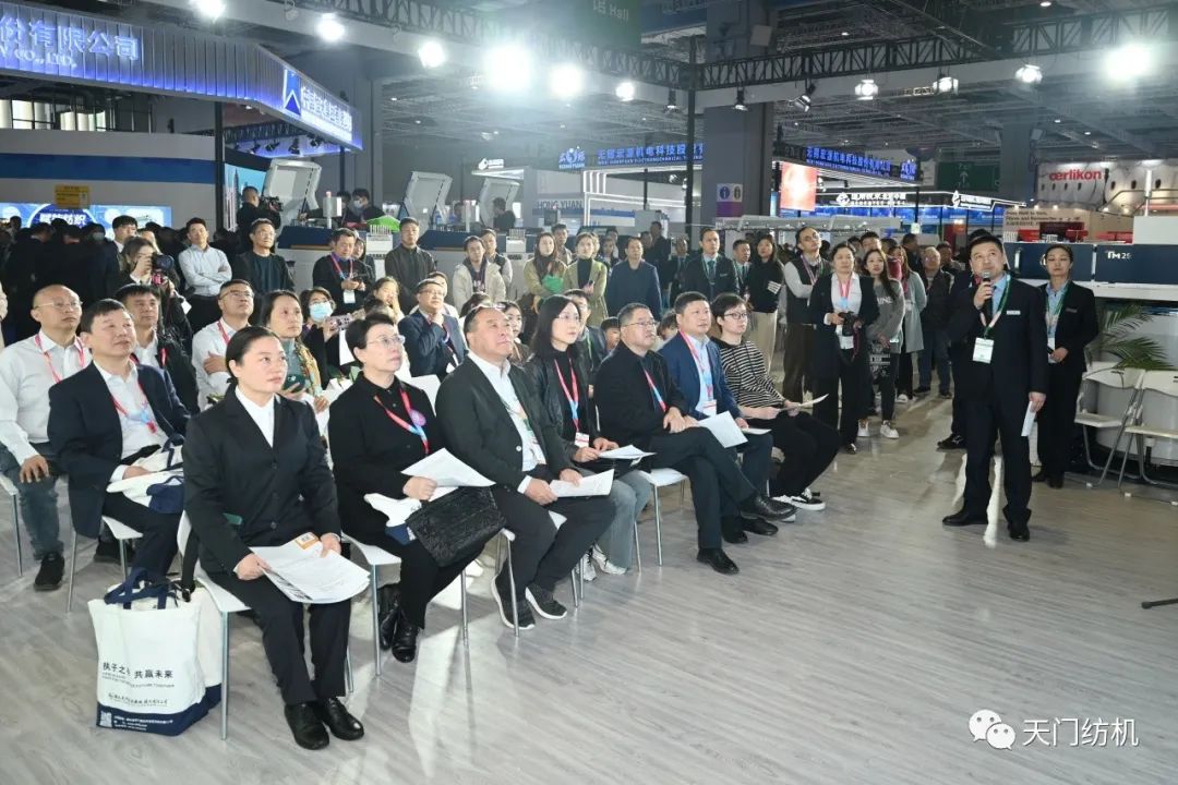 中國紡織工業聯合會會長孫瑞哲,副會長夏令敏、徐迎新,老領導張延愷副會長和歐洲紡織機械制造商委員會主席Mr. Ernesto Maurer等嘉賓共同揭幕,天門紡機T2、T3系列新產品正式亮相。
