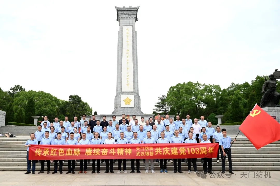 7月1日上午,天門紡機聯合武漢銀橋組織65名黨員奔赴中國第一將軍縣紅安,開展以“追尋紅色印記,凝聚奮進力量”為主題的黨日活動,以此慶祝中國共產黨誕辰103周年。