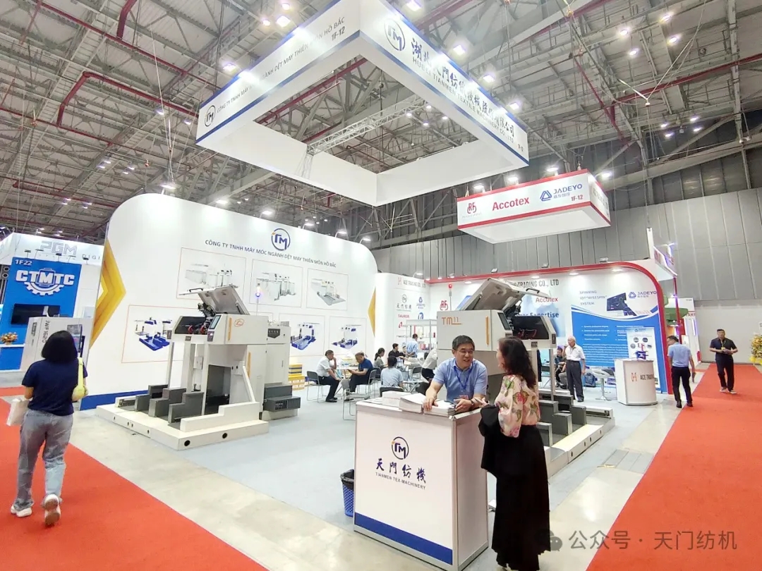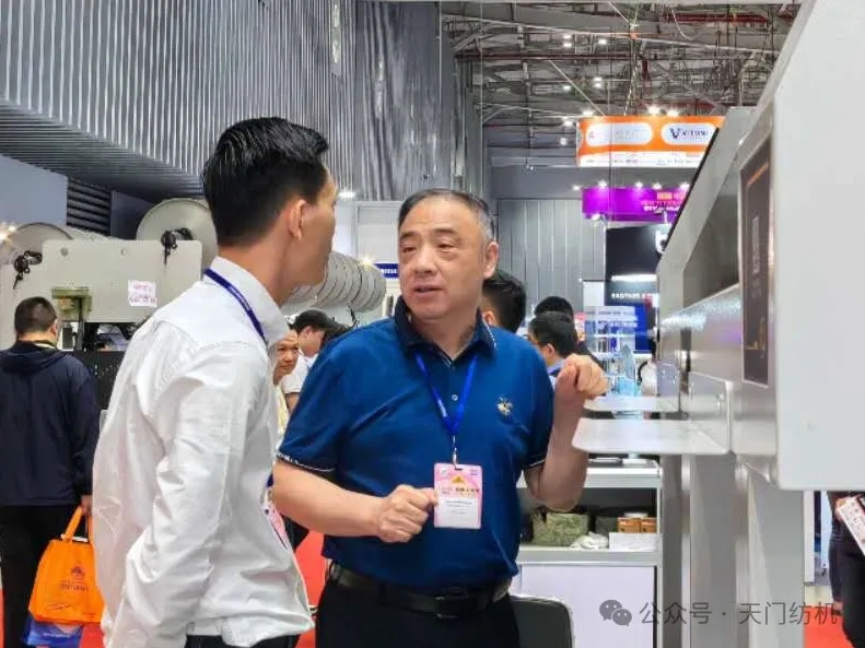 越南展會(huì)現(xiàn)場(chǎng)人流如織,其中天門紡機(jī)展區(qū)尤為矚目,開(kāi)展期間分別迎來(lái)HANO SIMEX、VICOTEX、HONG LINH、NHA TRANG、THANG CONG、PHU BAI等50余家越南紡企的到訪,T1系列并條機(jī)憑借卓越性能表現(xiàn),引發(fā)現(xiàn)場(chǎng)觀眾駐足,多位老客戶對(duì)T1系列并條機(jī)的穩(wěn)定性與高效產(chǎn)能給予高度評(píng)價(jià)。
