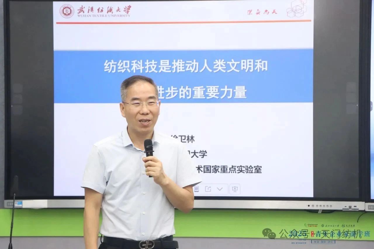 第一課由中國(guó)工程院院士、武漢紡織大學(xué)黨委書記徐衛(wèi)林主講,主題為《紡織科技是推動(dòng)人類文明和社會(huì)進(jìn)步的力量》。他從紡織起源開始娓娓道來,貫通文化、品牌與時(shí)尚,深入剖析紡織科技的發(fā)展脈絡(luò)與未來趨勢(shì),為學(xué)員們帶來前瞻視野。