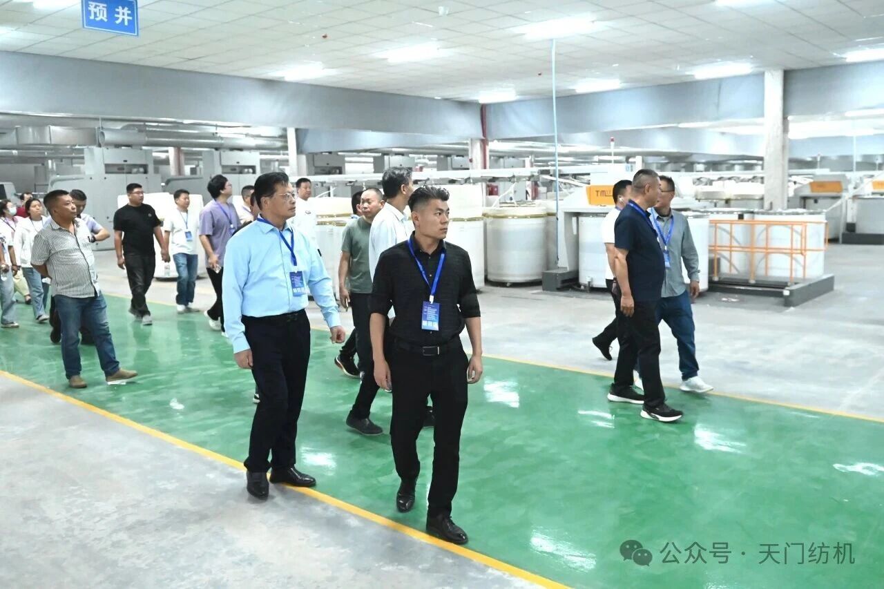 9月16日,參會代表赴新疆蘇錦紡織、新疆唐錦紡織及新疆前海元能織造等優秀企業參觀學習。值得一提的是,蘇錦紡織在2024年投產的20萬錠項目中,批量選用了天門紡機生產的TM系列并條機。這批設備自投產以來運行穩定、性能出色,獲得了企業高度認可。